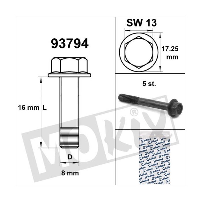 Bulloni per telai flangiati SW13 M8x16 neri (5 pezzi)