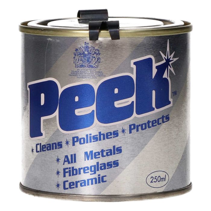 Peek Chrome Cleaner è una pasta lucidante multiuso che lucida e lucida delicatamente la superficie. La granulosità della pasta detergente è minuscola e appena visibile ad occhio nudo. L'abrasivo contenuto in Peek Chrome Cleaner è quindi molto più fine e delicato per lucidare il cromo rispetto alla maggior parte delle altre paste lucidanti. Il prodotto è ideale per le parti cromate di biciclette, motocicli e altri veicoli a due ruote, ma ha anche molti usi dentro e fuori casa. Se la prima eruzione cutanea blu appare sugli scarichi cromati o in acciaio inossidabile, trattali rapidamente. La pasta pulisce e protegge dall'ossigeno e dall'umidità; dopo il trattamento ci vuole molto più tempo prima che i sintomi si ripresentino.