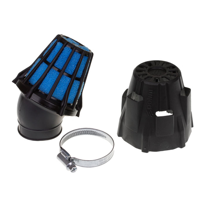 Powerfilter/filtro aria open sport 46mm attacco carburatore/angolo 30 gradi nero/blu Polini 203.0097