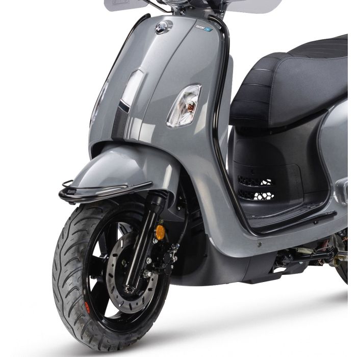 Un piccolo segnale può trasformarsi in un disastro e le bellissime barre paramotore nere lucide del Sym Fiddle 4 proteggono lo scooter dai danni. Inoltre, conferisce al tuo Sym Fiddle