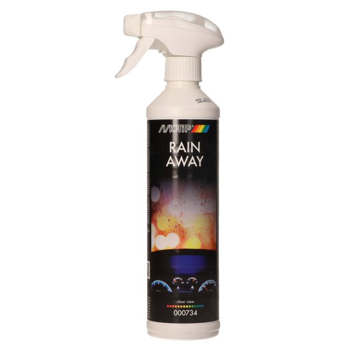 Può essere utilizzato a partire da una temperatura esterna di 4º Celsius. Pulire e asciugare le superfici prima del trattamento. Effettua Rain-Away su un panno piccolo, piegato e asciutto, sposta il panno con Rain-Away con un movimento circolare sul parabrezza. Lascia asciugare Rain Away per un po'; potrebbe apparire una leggera nebbia, ripeti il trattamento Rain-away per assicurarti che il parabrezza sia completamente coperto. Rimuovi la nebbia con un panno asciutto o facendo scorrere dell'acqua sul parabrezza e asciugandola con un panno asciutto. Nota: applicare Rain-Away sia all'interno che all'esterno del parabrezza.Proprietà di Motip Rain-Away